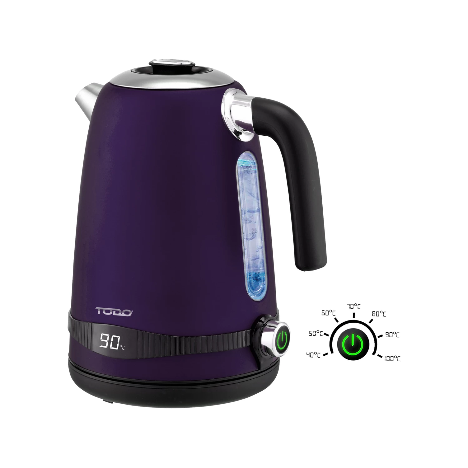 Always missing the right temperature for your cuppa? Preset your temperature with your new TODO smart kettle. More energy efficient as it re-heats only up to your preference rather than re-boiling. Simply press the one touch power button to boil, or set your own temperature with the easy to use smart dial temperature control with keep warm function.Highlights:1.7L Large CapacityOne Touch Control to BoilDisplay Shows Current Jug Water TemperatureSmart Dial Temperature Control with Keep Warm7 Temperature Settings (40°C, 50°C, 60°C, 70°C, 80°C, 90°C, 100°C)Keep Warm FunctionStainless Steel Design360° Rotating BaseDocking Base Stand ConnectorDisc Heating Element2200W PowerSpecifications:Power: 1850-2200WVoltage: 220-240V, 50/60HzIndicator: LED (Red / Green)Control: Smart Dial with Touch ControlTemperature Control: 7 Settings (40°C, 50°C, 60°C, 70°C, 80°C, 90°C, 100°C)Keep Warm Function: YesCapacity: 1.7 LitreBase: 360 Degree RotatingBody: Stainless SteelElement: Disc Heating ElementWater Level Scale: YesLid: RemoveableAuto Shut Down: After Boil (when not in Keep Warm Mode)Cord Storage: Yes (in base)Dimensions (Kettle): 200mm x 220mm x 155mmDimensions (Base): 155mm x 42mm x 155mmWeight (Kettle): 700gWeight (Base): 140gContents: Cordless Kettle, Docking Base, Manual