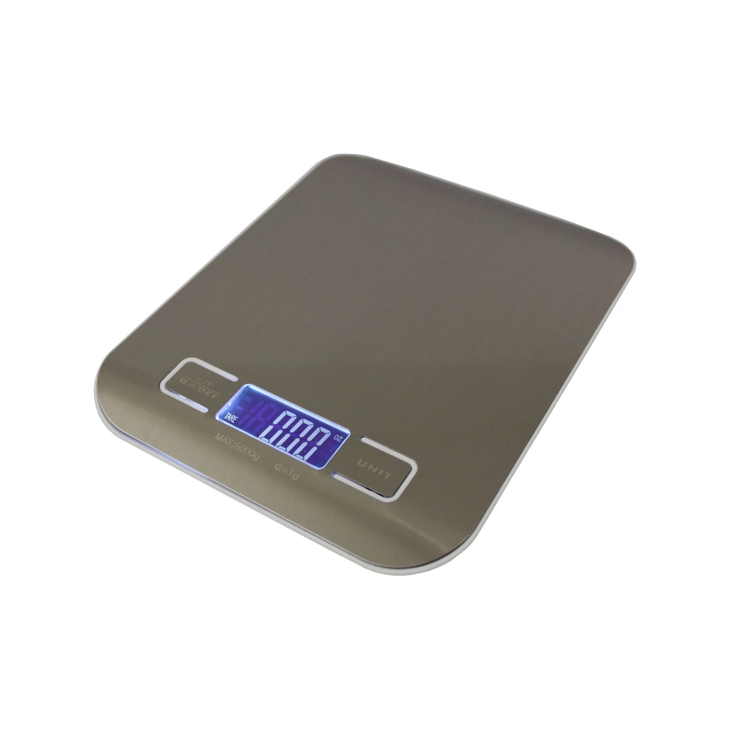Stainless Steel PanelWhite Backlit LCD DisplayPrecision Strain Gauge5000g (max. capacity)Selectable Measuring Unit (g, oz, lb (oz), ml)TARE FunctionAAA Battery Powered (x2)Type: Electronic Kitchen ScalePanel Type: Stainless SteelLCD Display: 40mm x 18mm Easy View LCDLCD Type: White BacklitWeighing Unit: Grams (g), Milliletres (ml) Ounce (oz), Pounds (lb:oz)Rated Load: 5000g (11lb)Division Graduation: 1g / 0.05ozTechnology: Strain Gauge Precision SensorFunction Key 1: On/Off, TARE/ZEROFunction Key 2: UnitLow Battery Indicator: YesOverload Indicator: YesAuto / Manual Shut-off: YesDimensions Scale (D x W x H): 180mm x 140mm x 18mmWeight (with batteries): 240gBattery Type: AAA Battery (x2)