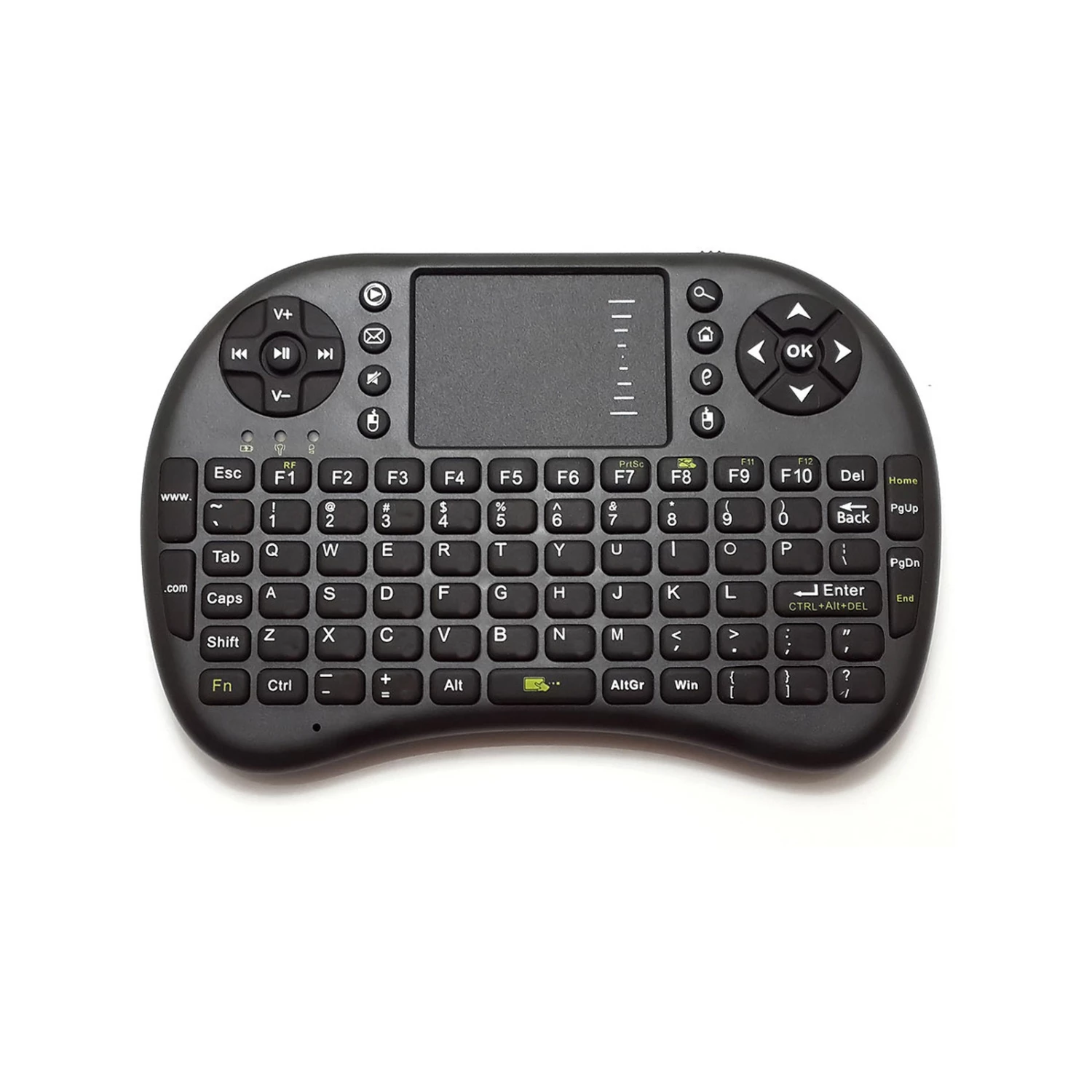 2.4GHz Mini Wireless KeyboardRechargeable BatteryTouch-pad MouseUnique Hotkeys + Media Player KeysUSB 2.0 ConnectivityRange up to 10mLED IndicatorsCharges via USB CableWindows / Mac / Linux CompatibleOperating Frequency: 2.4GHz RFOperational Range: 10mTransmit Power: +5 db max.Keyboard: QWERTYMouse: TouchpadSpecial Hotkeys: YesMedia Player Keys: YesShortcut Keys: YesLED Indicators: YesPower: Li-ion Rechargeable BatteryBattery: 3.7V, 800mAh, 2.96Wh Li-ionOperation Voltage: 3.3VOperation Current: <50mACharging Current: <300mASleep Current: <1mACharge: via USB 5V (Cable Supplied)Dimensions (W x D x H): 146.8mm x 97.5mm x 19mmWeight: 110gOperating System: Windows 2000 / CE / XP / Vista / 7 MAC OS x or Above Linux (Debian 3.1, Redhat 9.0, Ubuntu 8.10, Fedora 7.0)Connectivity: USB 2.0 Hi-SpeedContents: Mini Keyboard, Rechargeable Battery, USB Receiver, USB Cable, Manual